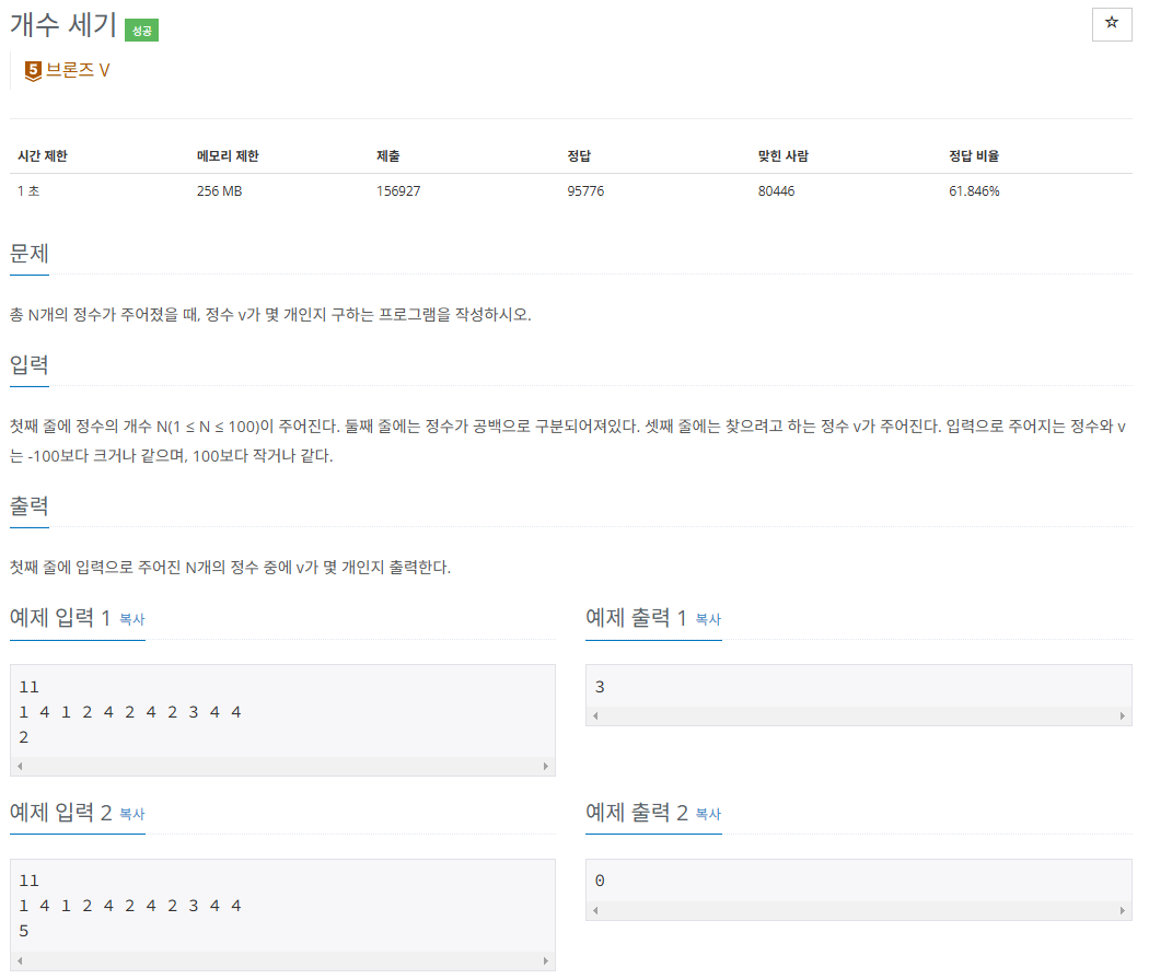 총 N개의 정수가 주어졌을 때, 정수 v가 몇 개인지 구하는 프로그램을 작성하시오.