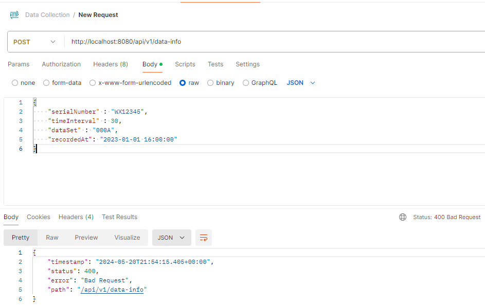"recordedAt": "2023-01-01 16:00:00" 이렇게 요청하면서 생긴 에러입니다.