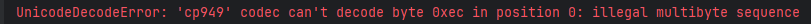 UnicodeDecodeError: 'cp949' codec can't decode byte 0xec in position 0: illegal multibyte sequence